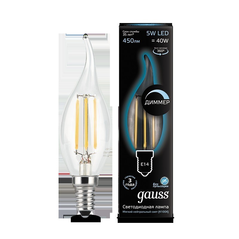 Лампа Gauss LED Filament Candle tailed dimmable 104801205-D